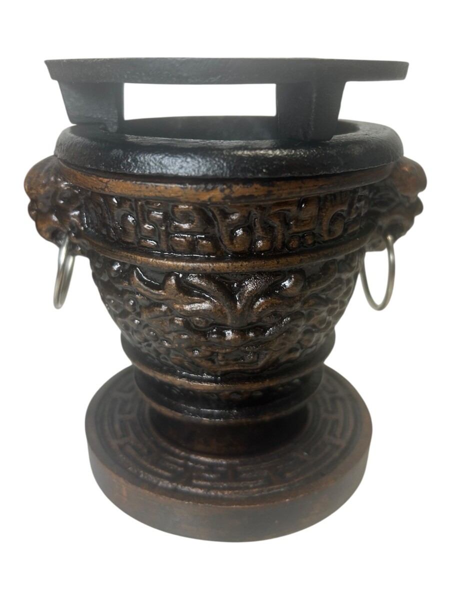 ? Ornate cast iron grill with decorative lion head handles
