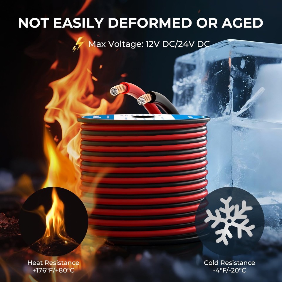 ?Wide Application for Low Voltage Projects? Ideal for 12V/24V DC systems, this wire is versatile for use in automotive speakers, subwoofers, LED light strips, remote control cars, electronic devices, lighting, and DIY projects. It is a reliable choice for low-voltage electrical hookups in both home and automotive environments.