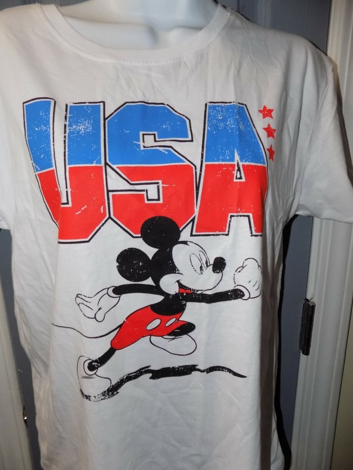 Disney White Short Sleeve Mickey Mouse USA T-Shirt Size M Women's NEW