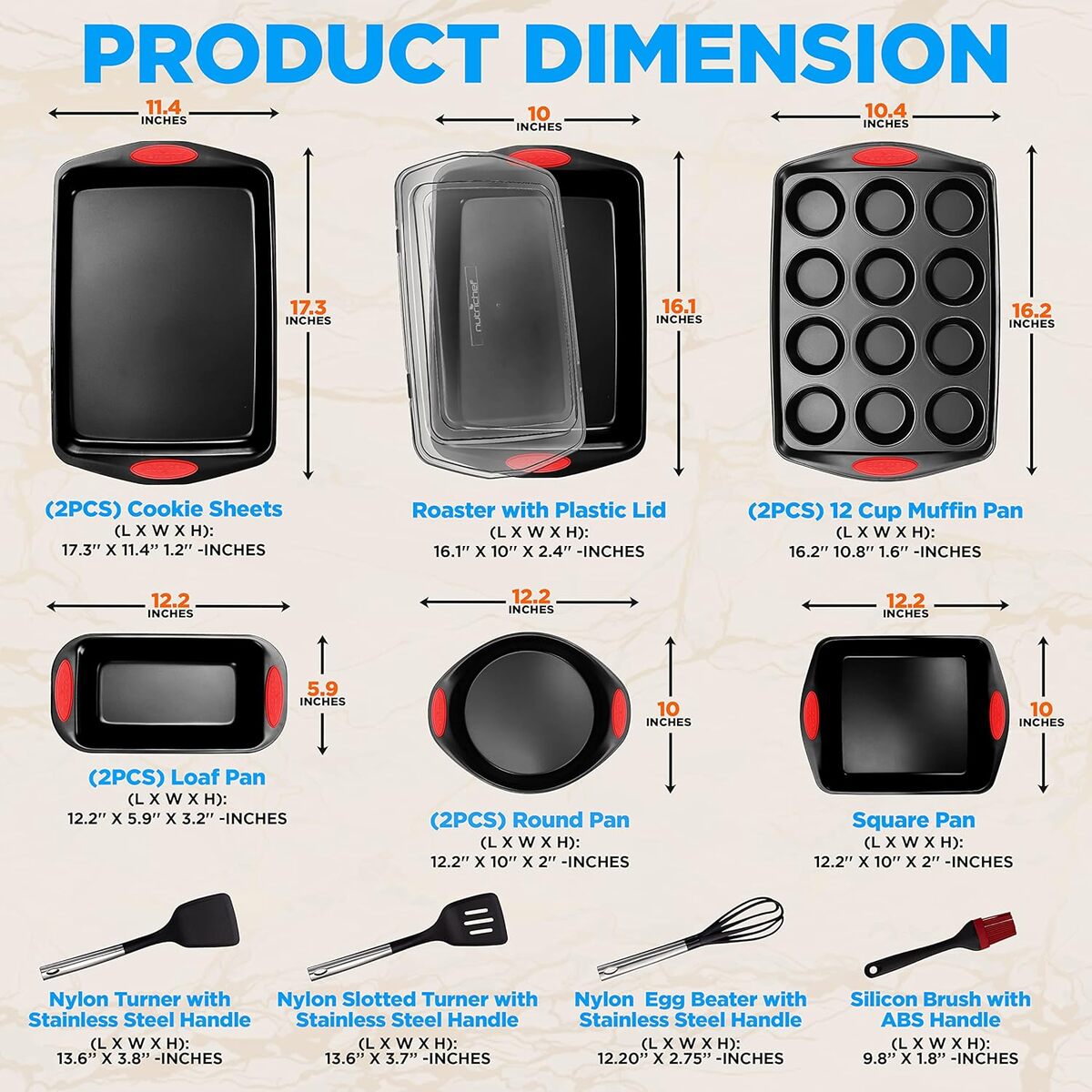 NutriChef 15 PC Nonstick Bakeware Set w/ Baking Utensils Black New