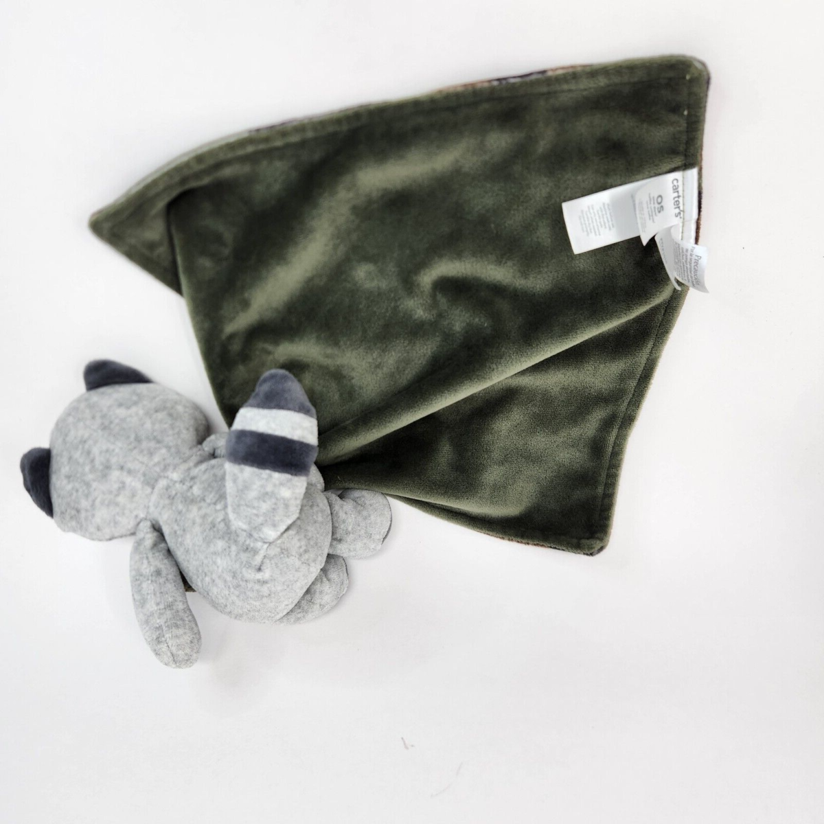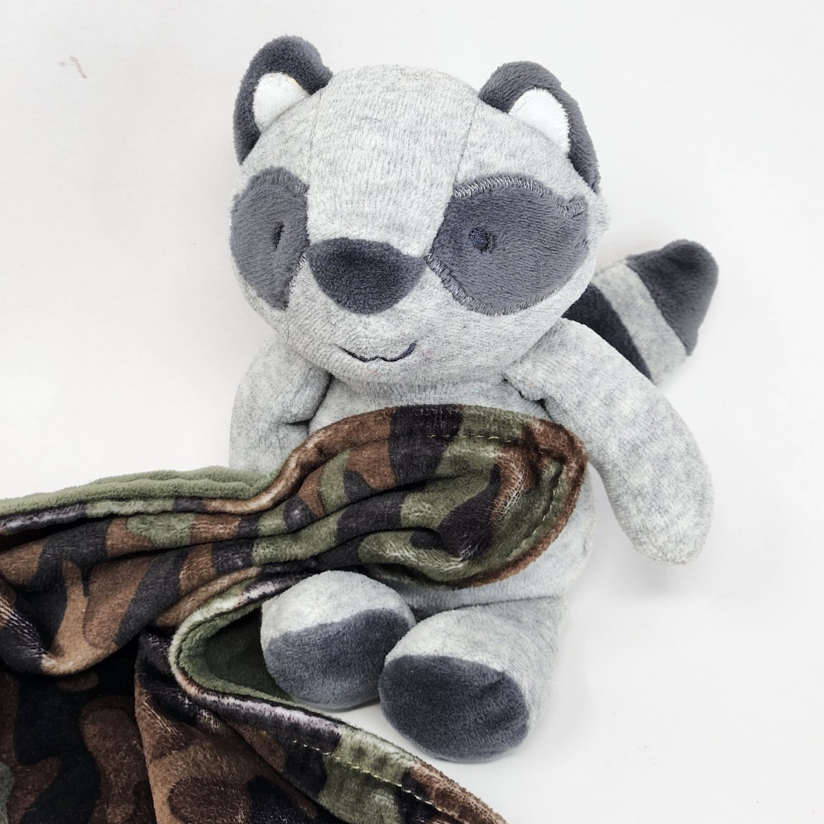 CARTER'S 2014 BABY GREY RACCOON HOLDING GREEN CAMO ARMY SECURITY BLANKET RATTLE