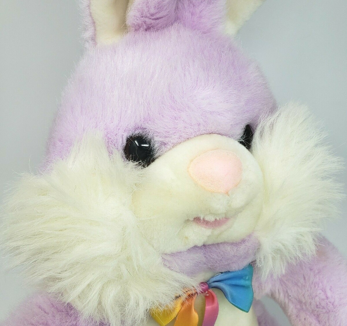 BETA TOYS 18" VINTAGE PURPLE BUNNY RABBIT STUFFED ANIMAL PLUSH W/ RAINBOW BOW