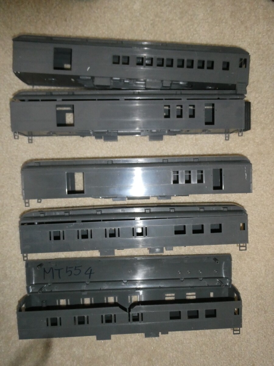 Lot of 5 MTH O Scale 60' Passenger Car Bodies and Roof 15" Long