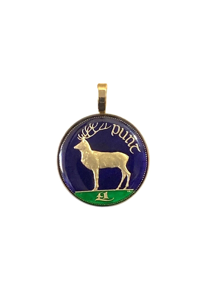 Irish Stag Pendant, Blue Animal Jewellery, Eire Necklace, Gift for Patrick, Gift for Mary, Gold Irish Jewelry.