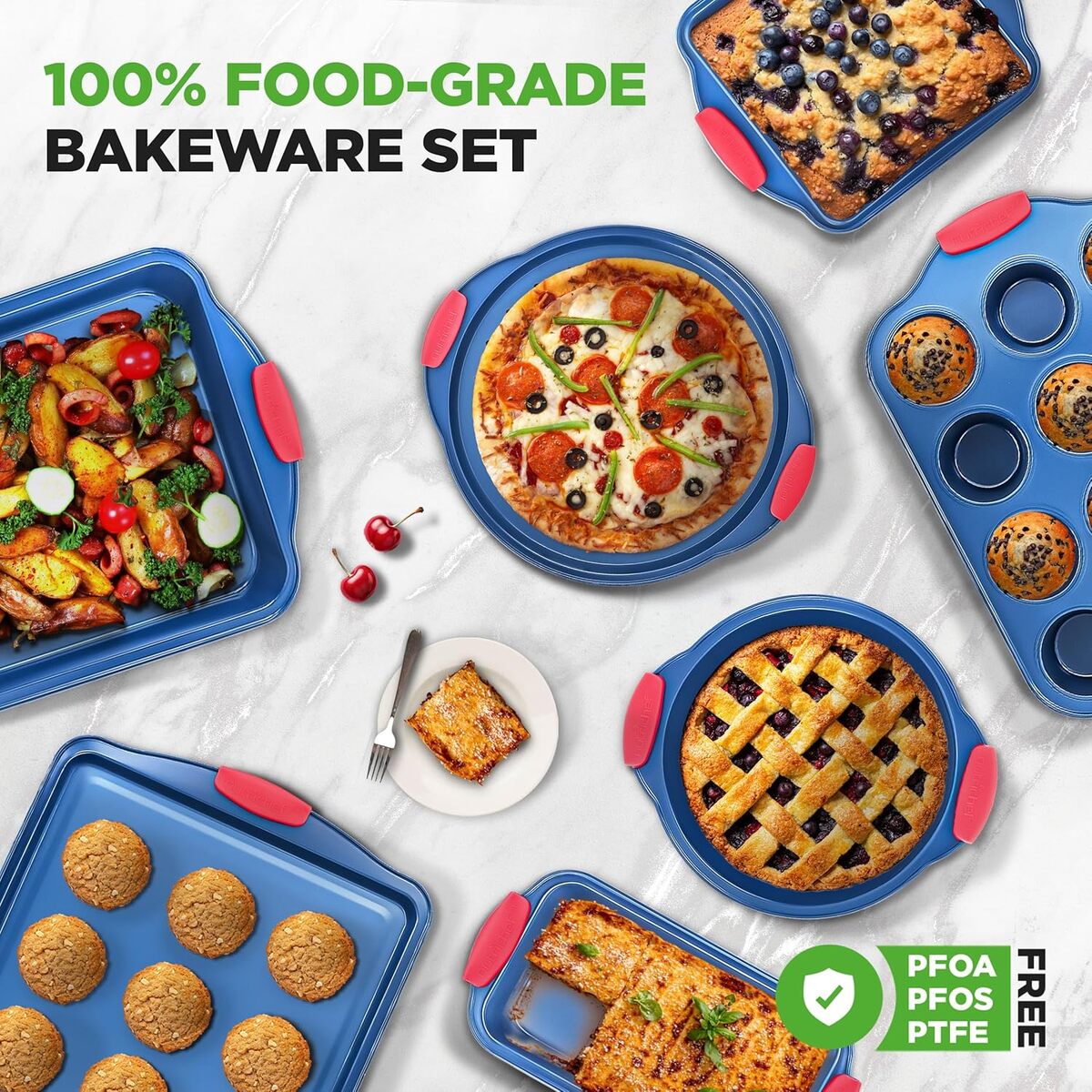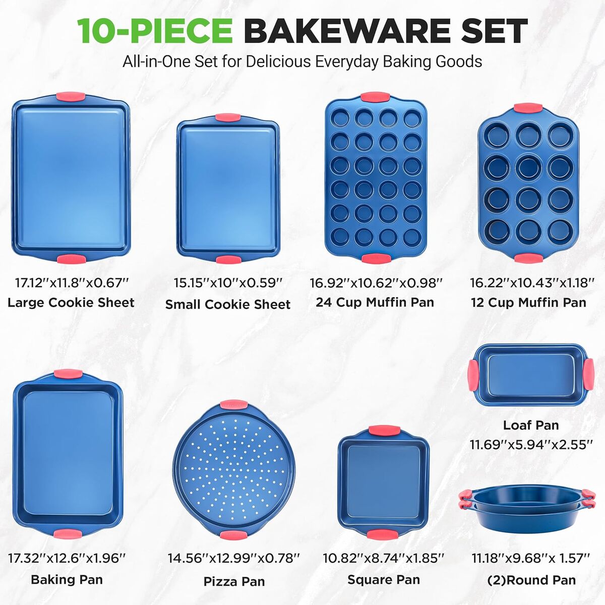 NutriChef 10 Piece Nonstick Bakeware Set – Premium Carbon Steel – Blue