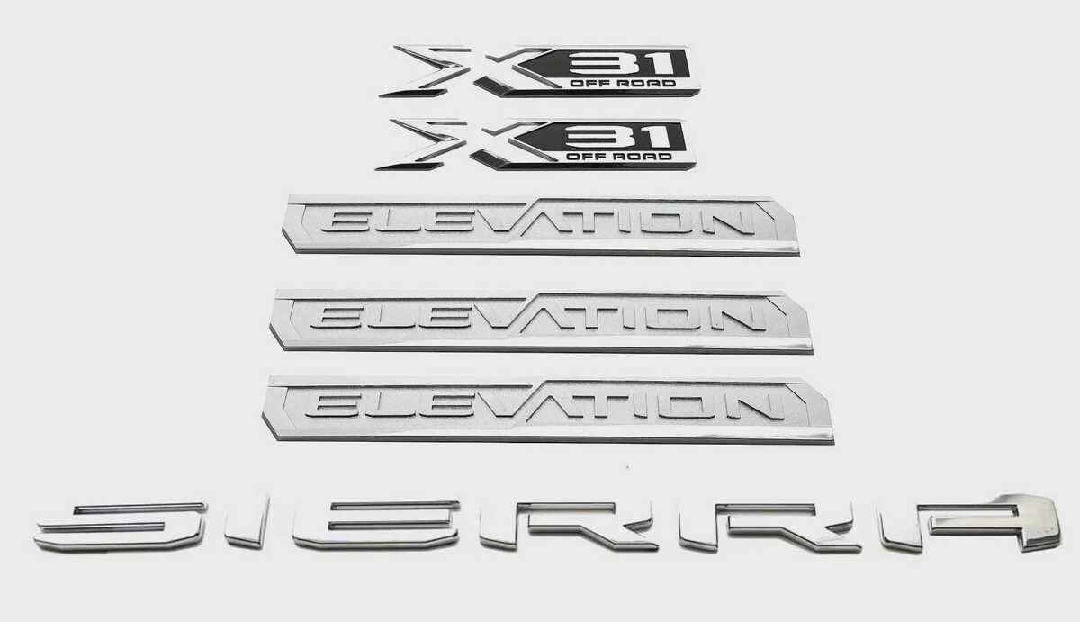 Upgrade your 20192023 GMC Sierra 1500 Elevation X31 with this 6-piece Chrome Emblem Set. Crafted to OEM specifications, these badges add a sleek, polished look to your trucks doors, rear, and bed for a premium factory-style appearance.