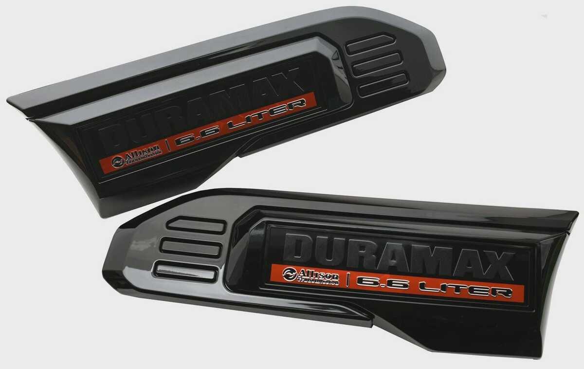 Upgrade your heavy-duty truck with this Pair of Driver and Passenger Side Vent Logo Emblems, designed for vehicles equipped with the Allison Transmission and 6.6 Liter engine. These badges provide a clean, bold, and professional OEM-style appearance, perfect for restorations, replacements, or custom styling.
