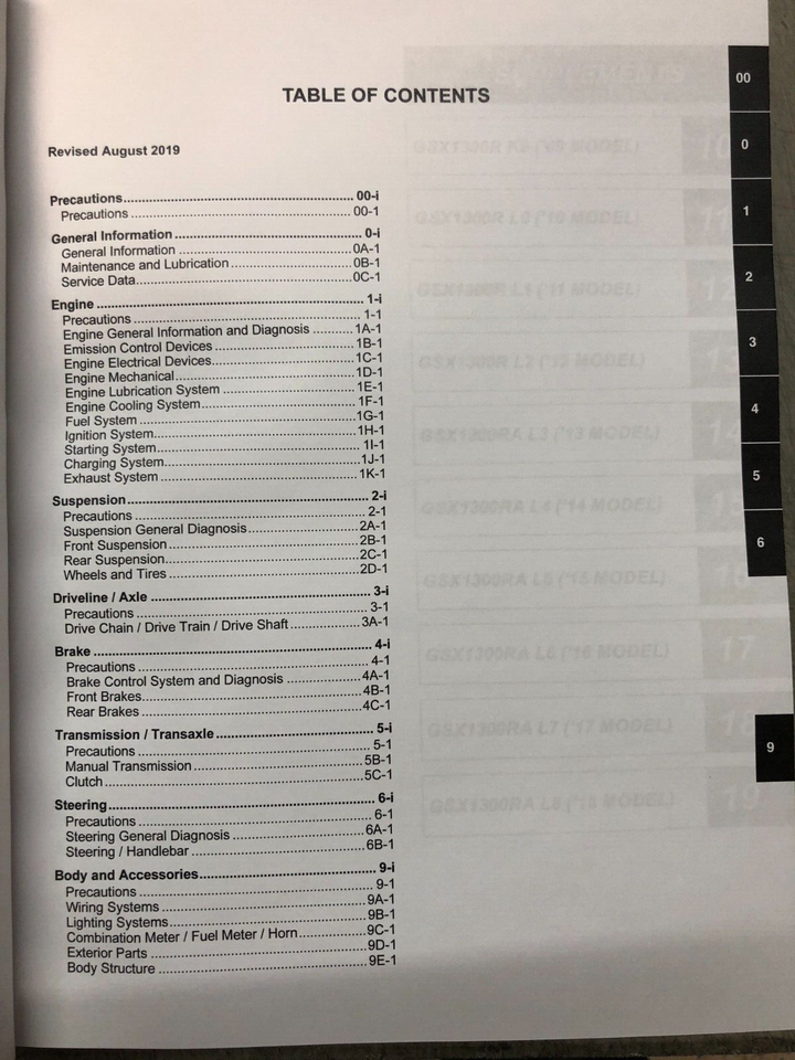 Manuale Di Riparazione E Officina Suzuki GSX1300R R/A Hayabusa 2008 2015 2020