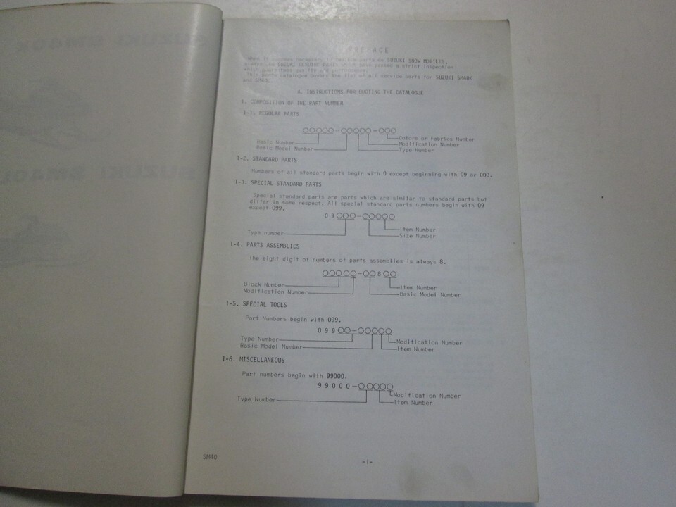 MANUEL DE CATALOGUE DE PIECES DE MOTONEIGE SUZUKI SM40 1974