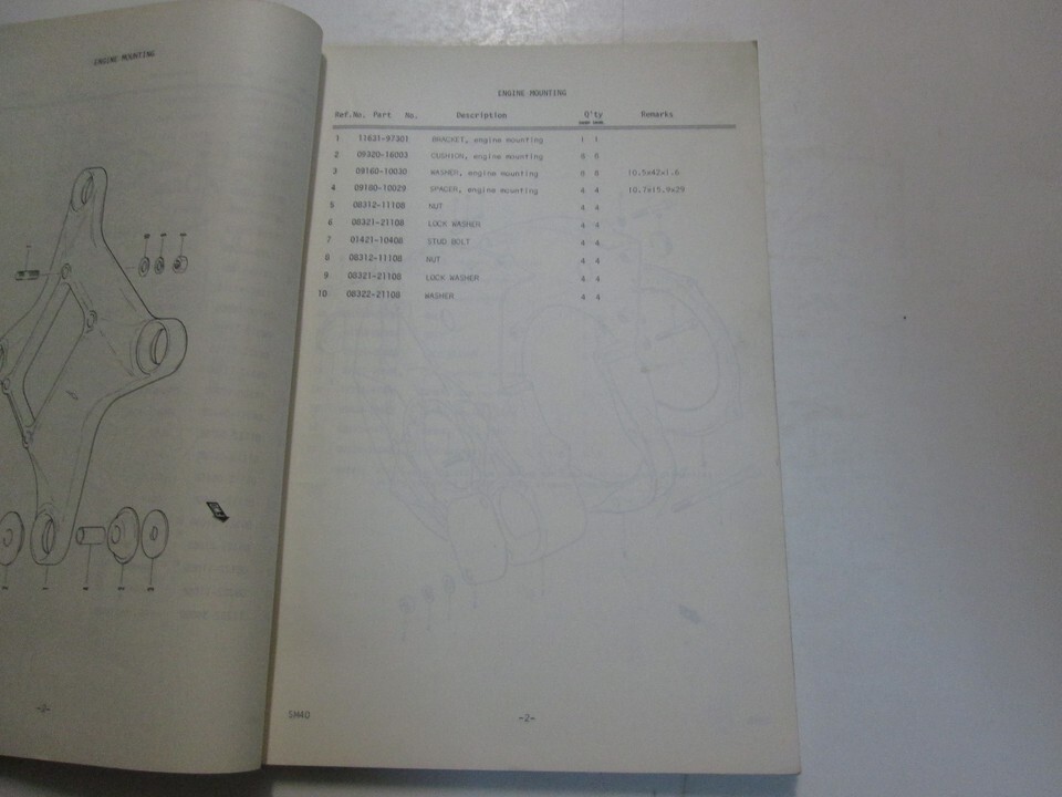 Informatif avec des illustrations, couvre les informations sur les pieces, explose illustrations et / ou diagrammes, grand manuel a avoir lorsque vous possedez un Suzuki SM40.