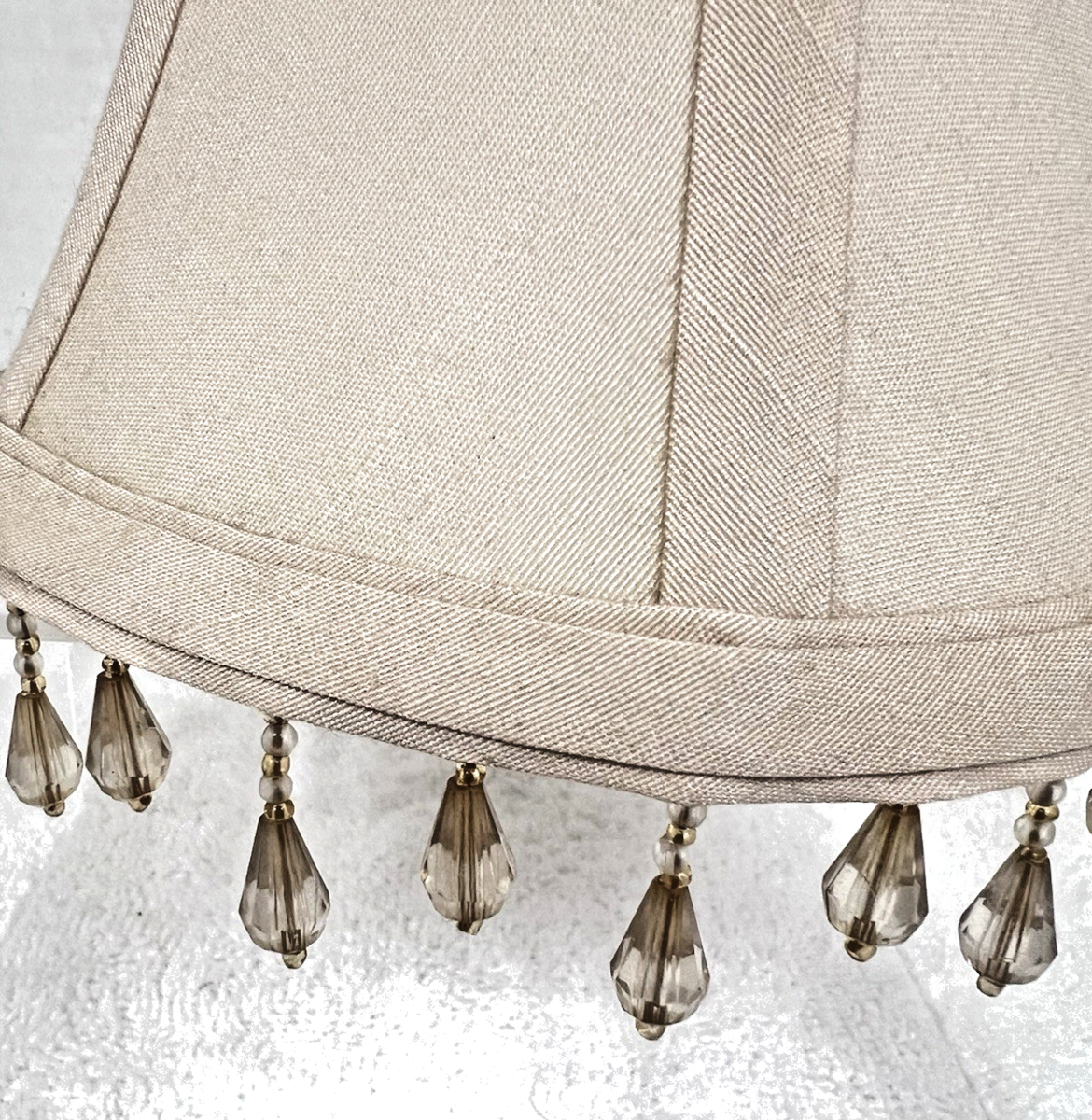 5" Tall Lamp Shade w Beaded Fringe Off White Linen w White Inside Clip Style