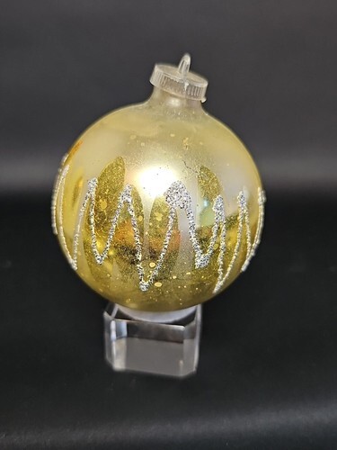 UP FOR SALE: Vintage West Germany Gold 3-Tone Blown Glass Christmas Ornament Ball Glitter