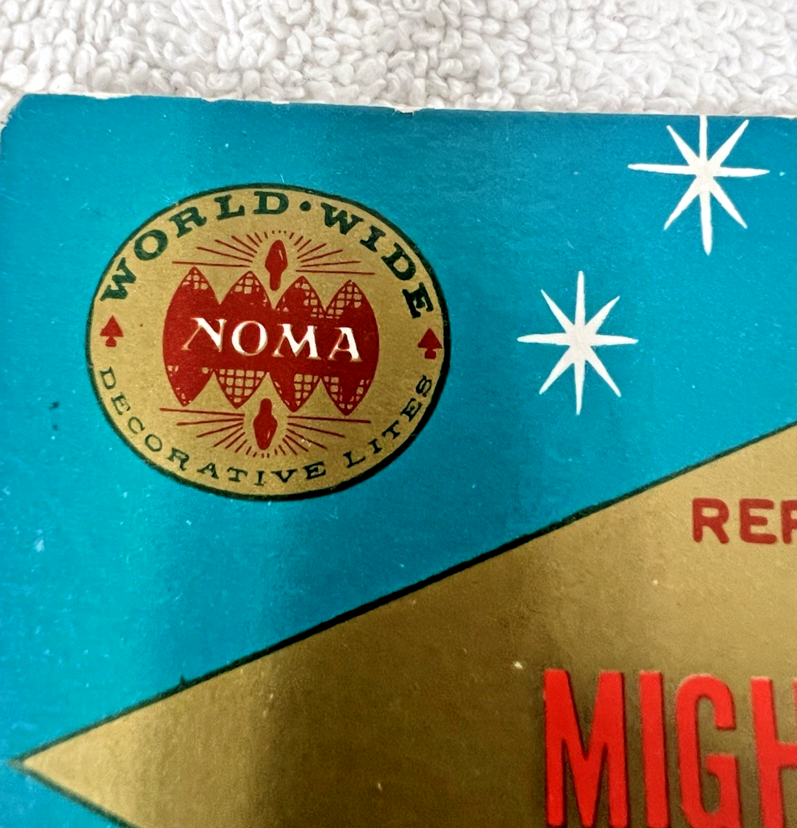 Vintage Original Package Noma Mighty Mite Replacement Push-In Lamps Christmas. Noma Mighty Mite replacement push-in lamp replacement bulbs appear to be unused hard to tell as carboard package predominantly sealed, small multi color bulb replacement package measures approx. 5 5/8" by 5 7/8". Tiny bulb replacements measure approx. 1 1/2", no damage to bulbs. See pictures.