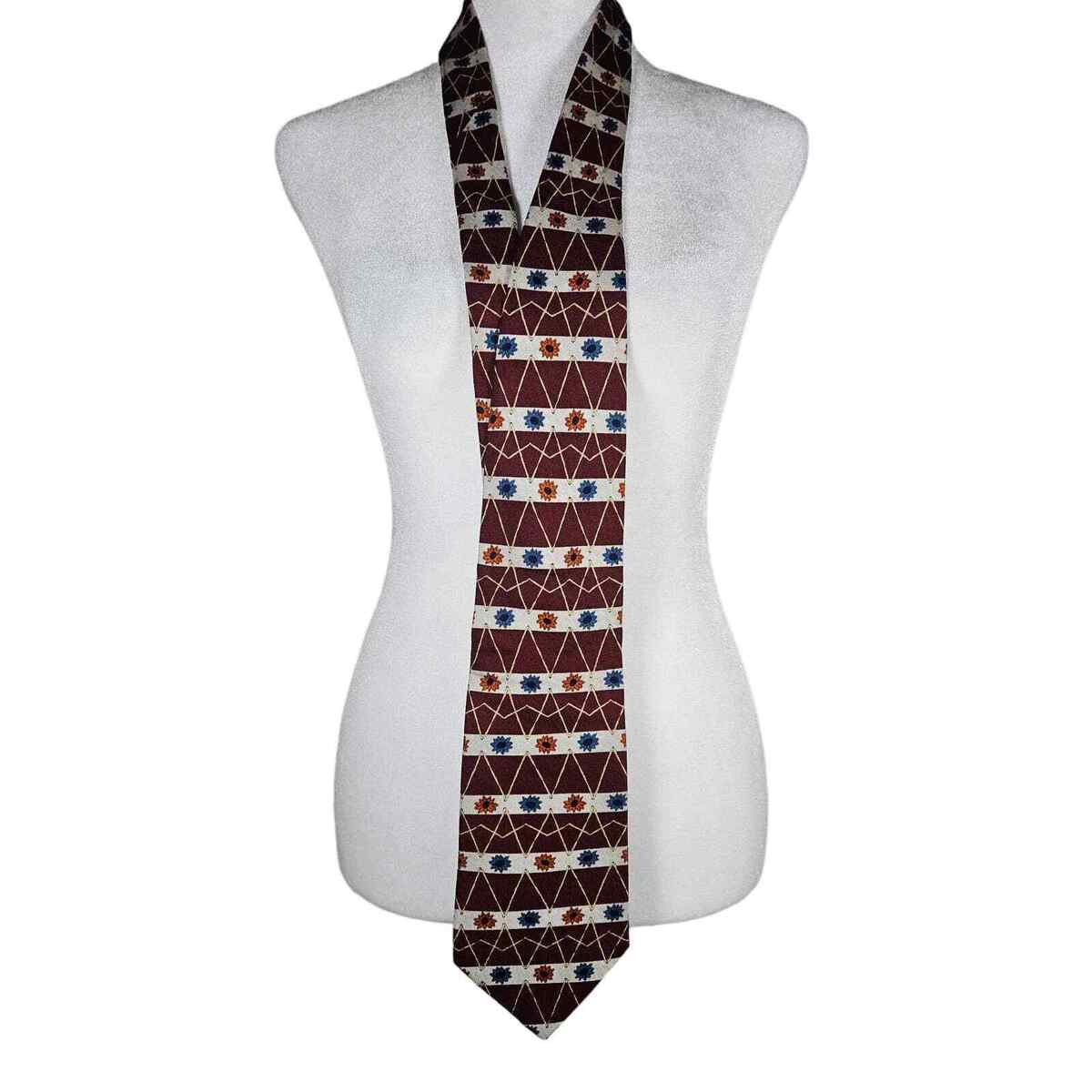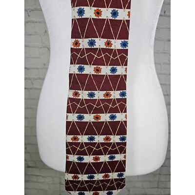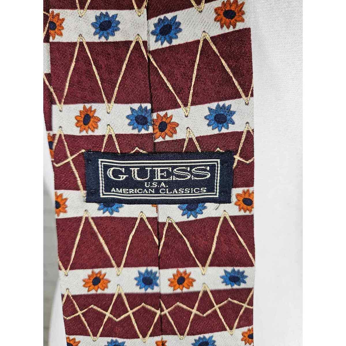 Vintage GUESS Men's Tie 100% Silk Red Orange Blue Floral Abstract