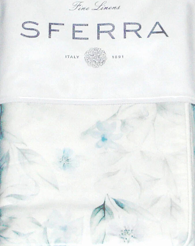 Sferra Caderina Blue Euro Sham Floral White Piping Sateen Print Italy NEW