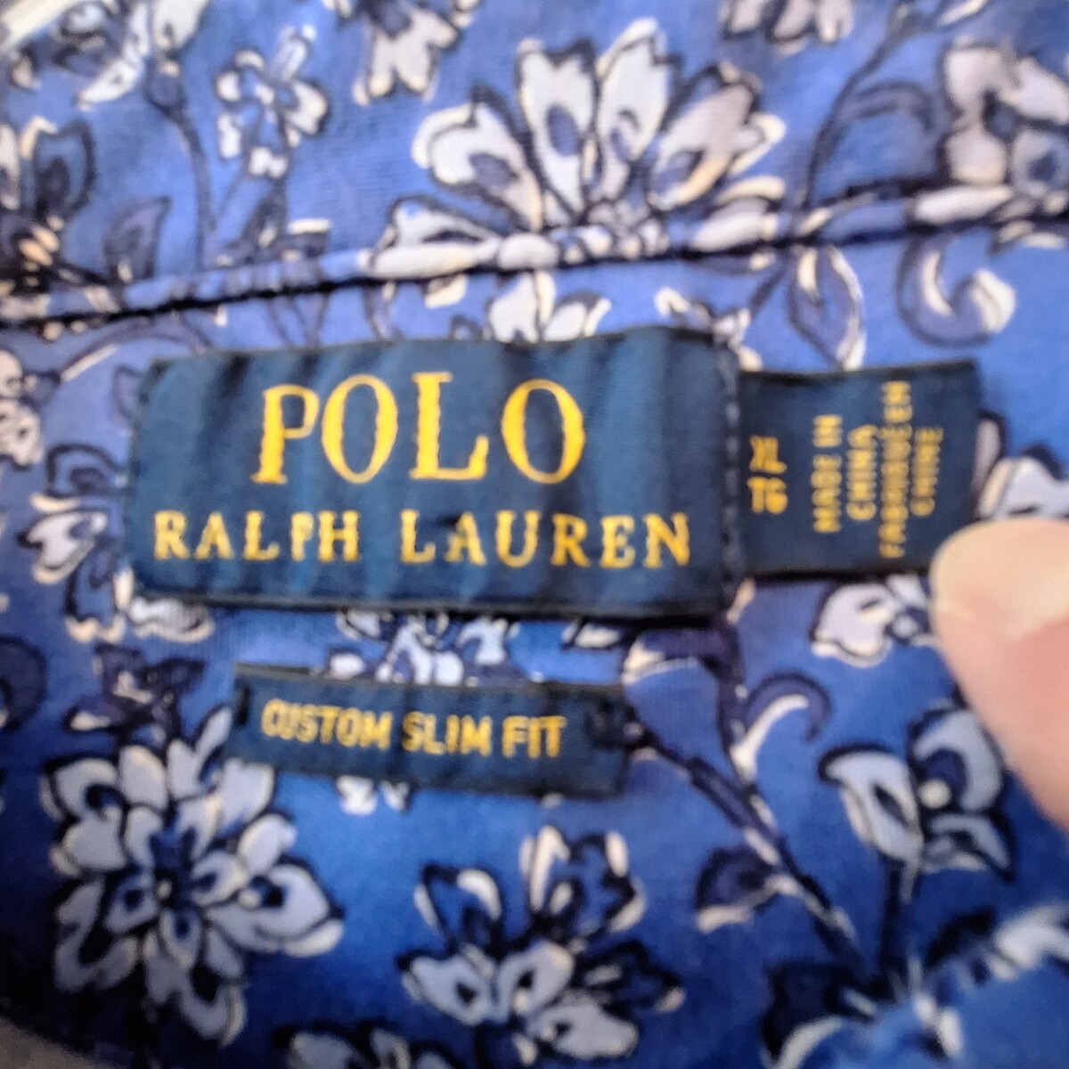 Polo Ralph Lauren Blue Floral Button Collar Shirt Mens XL Custom Slim Fit Soft