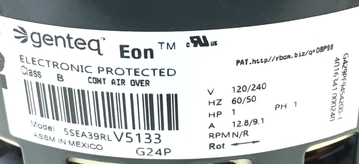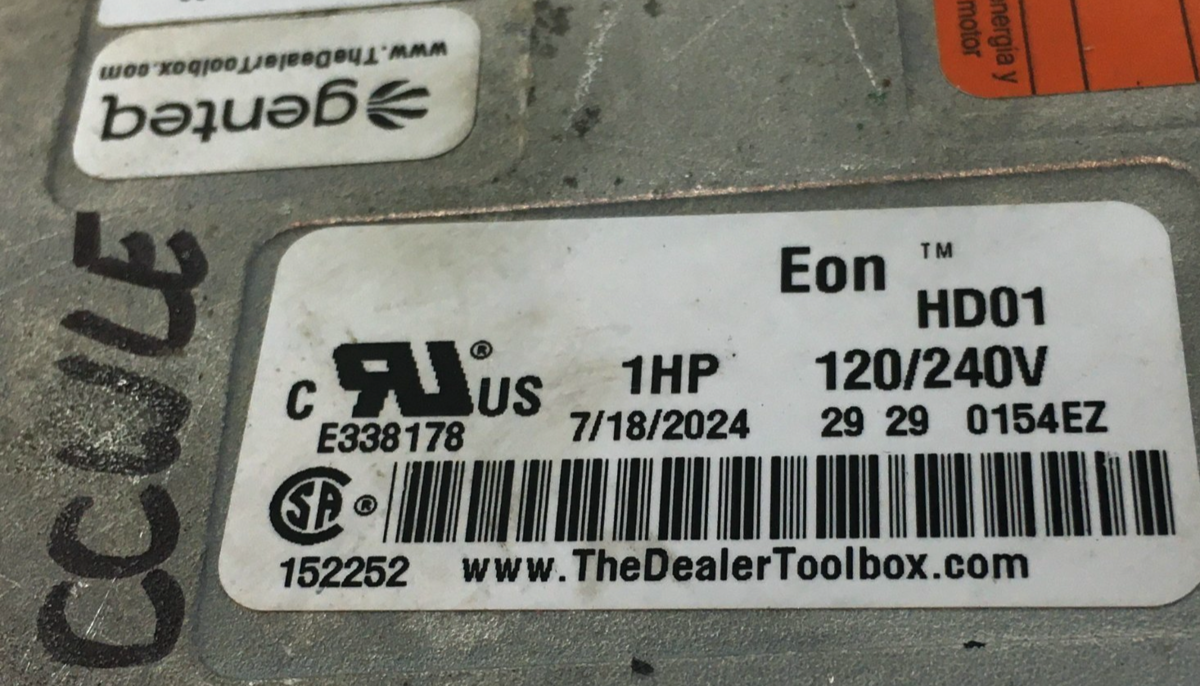 This is Genteq EON HD01 Motor Module 5SEA39RLV5133 D344702P03 1HP 120/240V programmed CCW Lead End rotation used part, dated 2024 year.