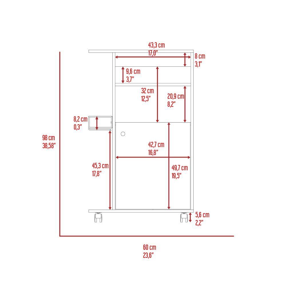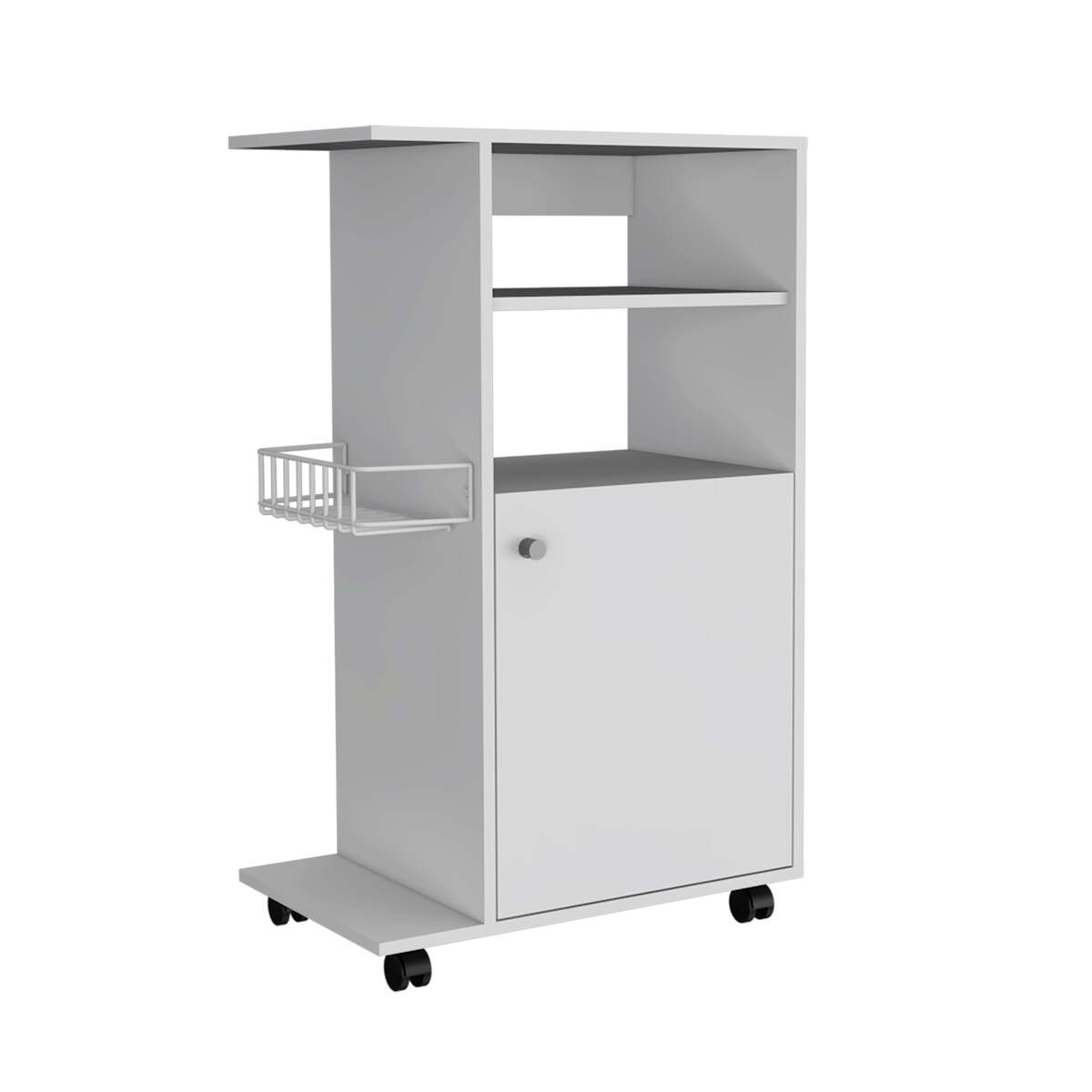 Clip White Kitchen Cart: Single Door Cabinet, Casters