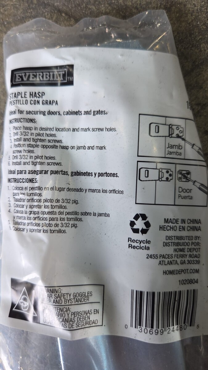 Item includes: Please note: This item includes 1x Everbilt 6 in. Galvanized Rotating Post Safety Hasp and 8x screws ? as pictured. No additional accessories included.