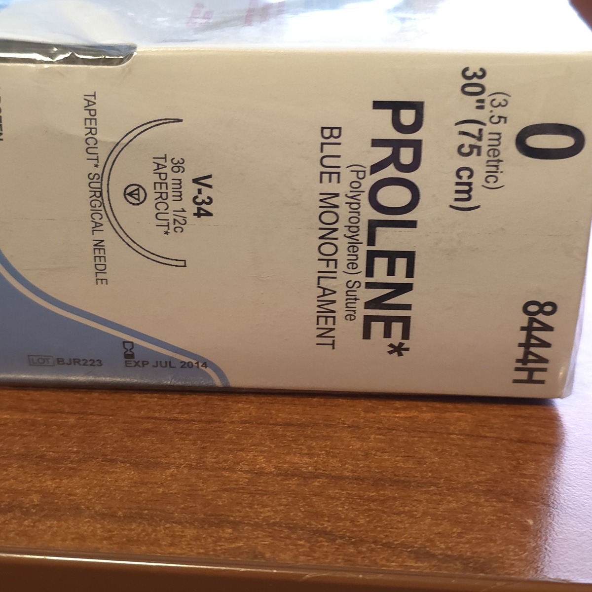 Prolene Blue Monofilament Polypropylne Suture 0 Tapercut V-34 1/2C 8444H box of 3 dozen sealed