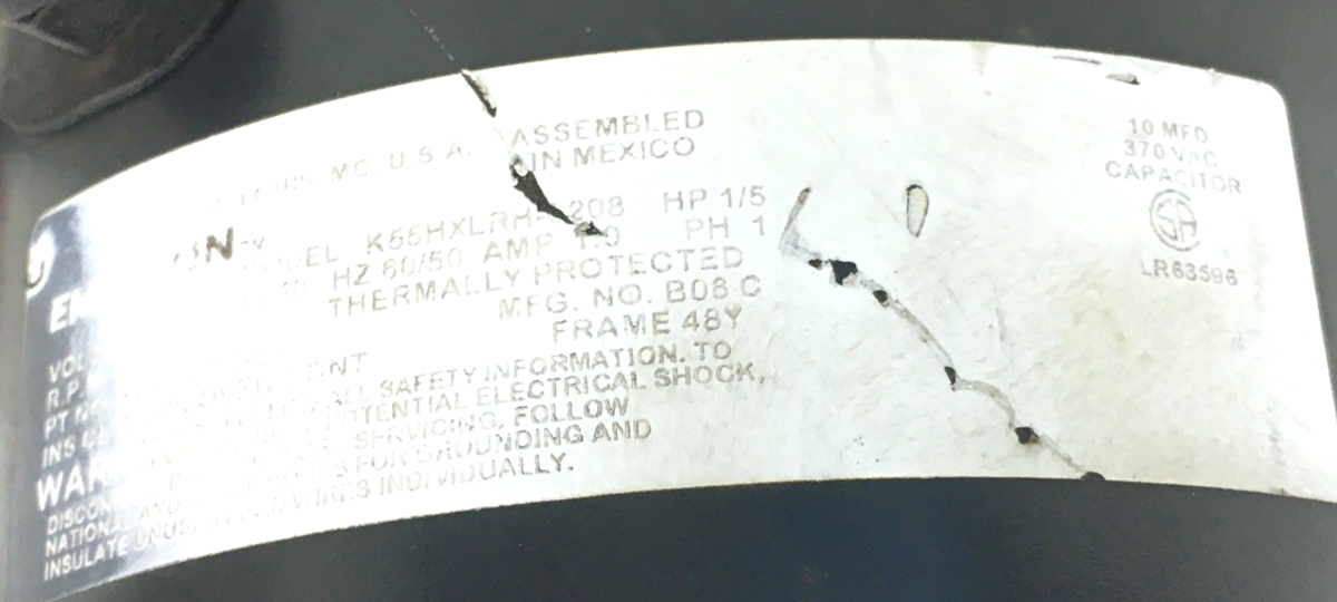 This is Emerson K55HXLRH-0208 CONDENSER FAN MOTOR 51-102008-03 1/5HP 208-230/220-240V 850 RPM used part.