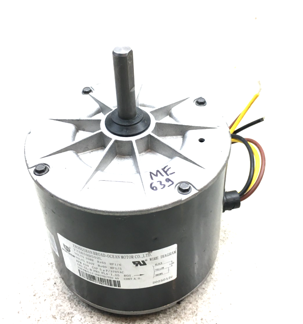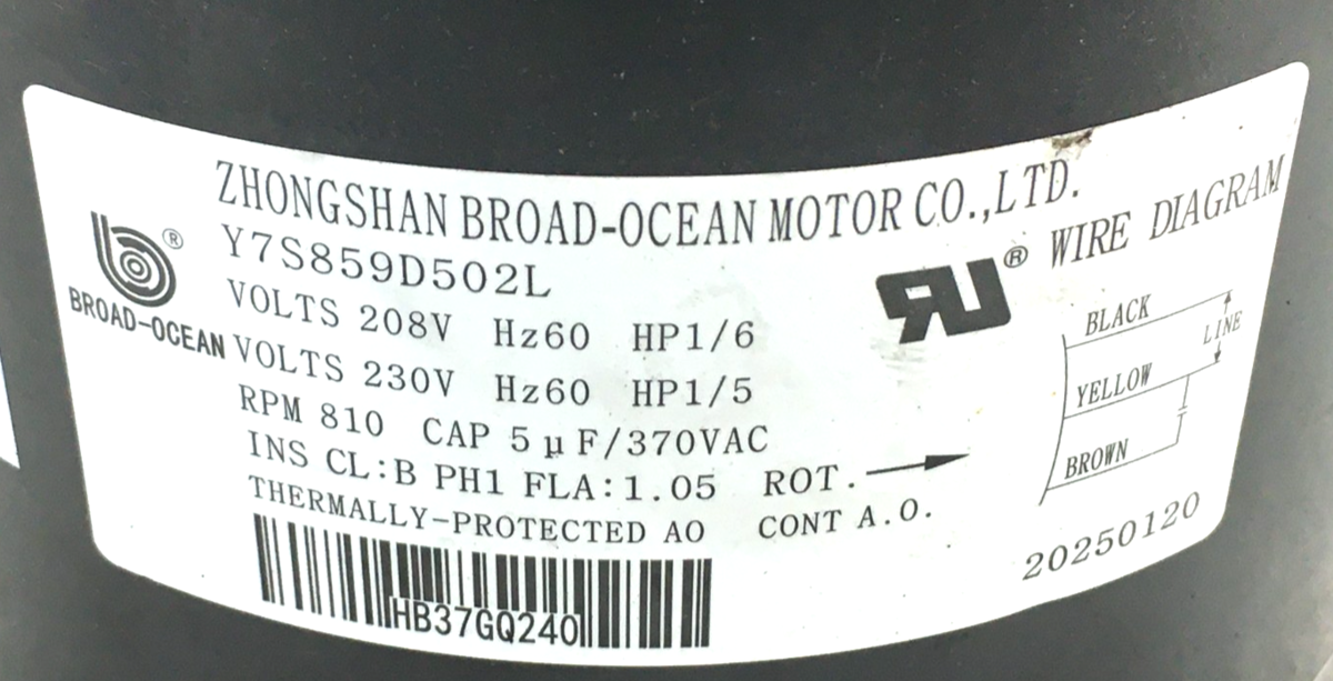 This is Broad-Ocean Y7S859D502L Condenser Motor 1/6 HP 208-230V 810 RPM HB37GQ240 used part.