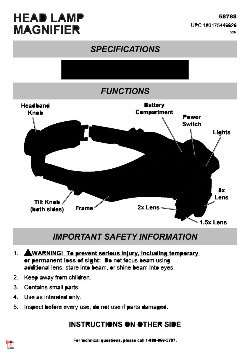One (1) Head Lamp Visor Style Magnifier with LED Lights |