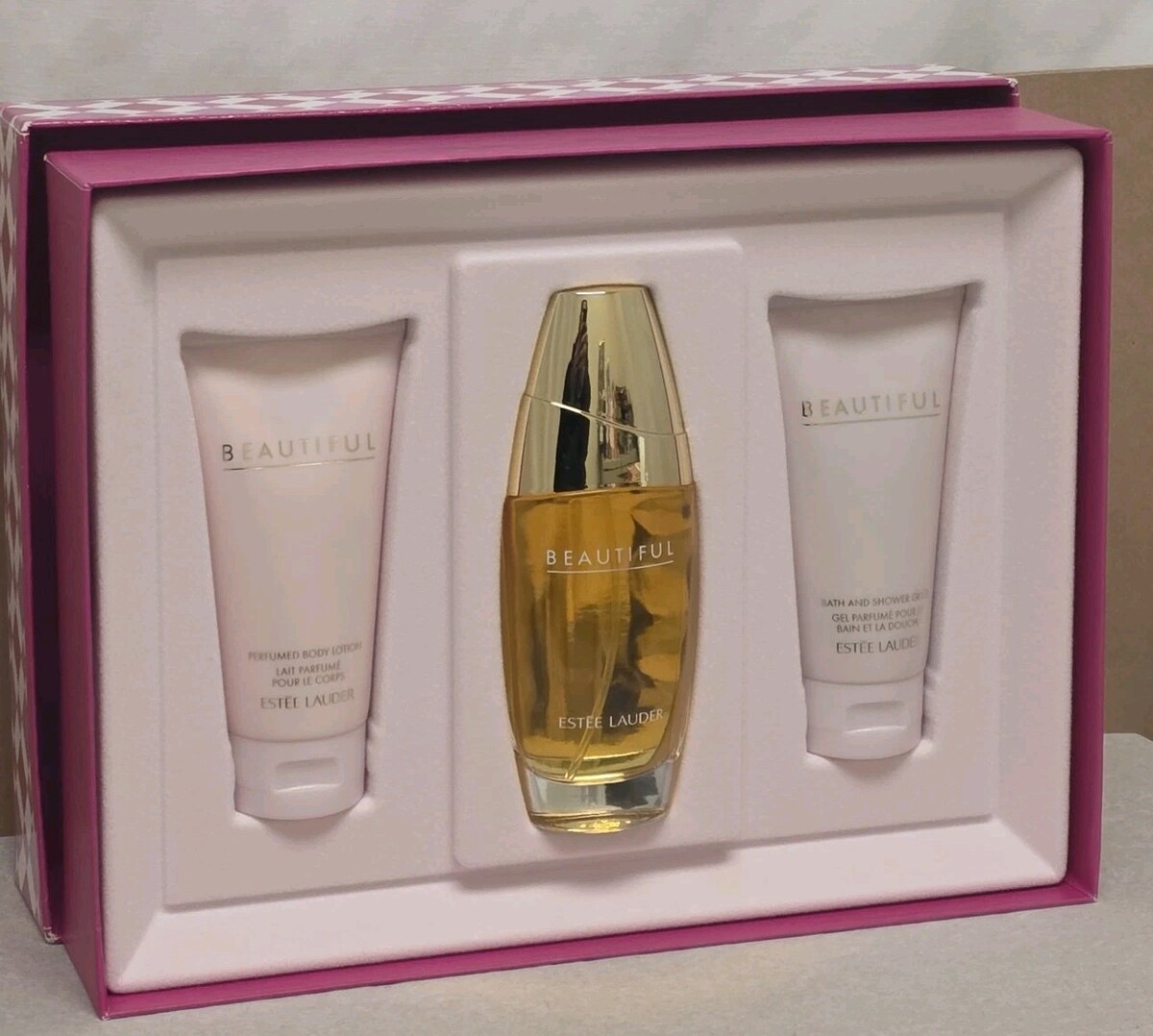 Beautiful Estee Lauder Romantic Favorites 75ml 2.5.Oz Eau De Parfum Spray 75ml 2.5 Body lotion 75ml 2.5.Oz Shower Gel Gift Set.