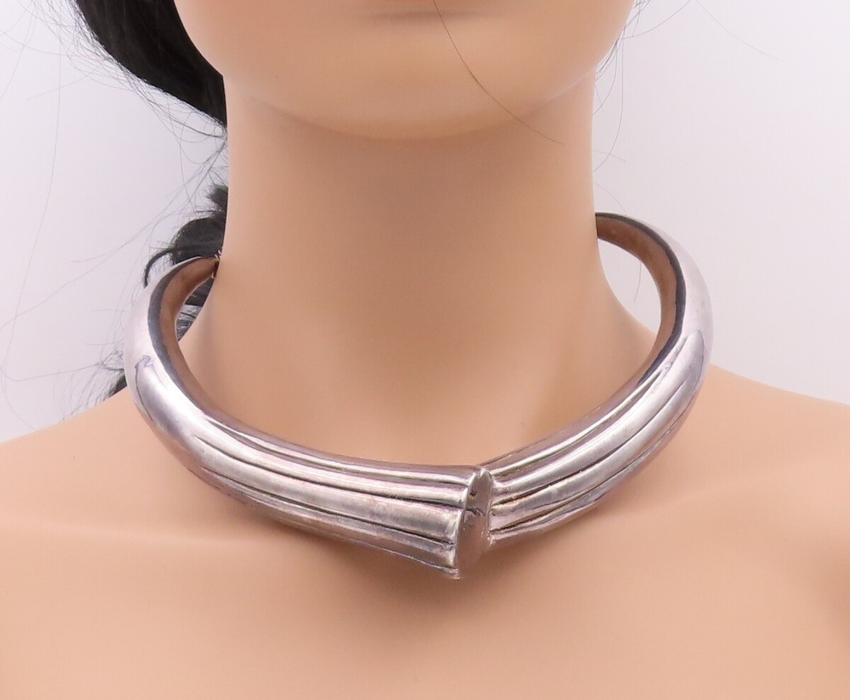 925 Sterling Silver Vintage Necklace YAACOV HELLER Solid Grooved Designer NE4489