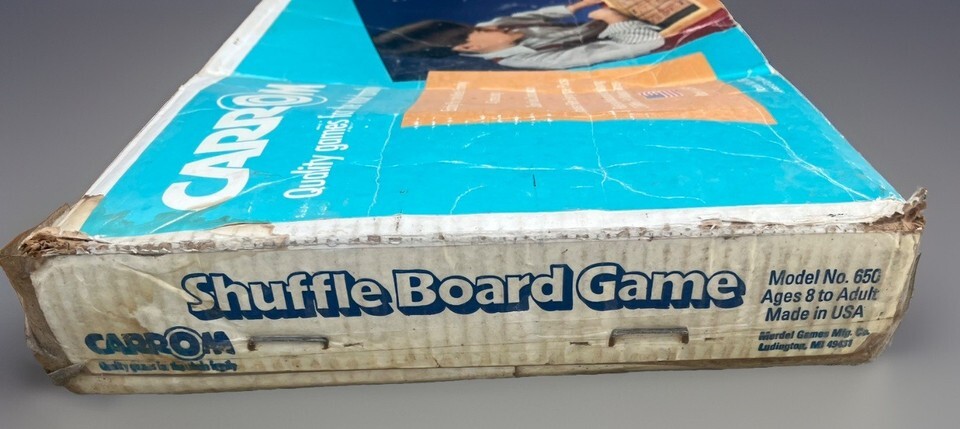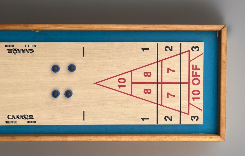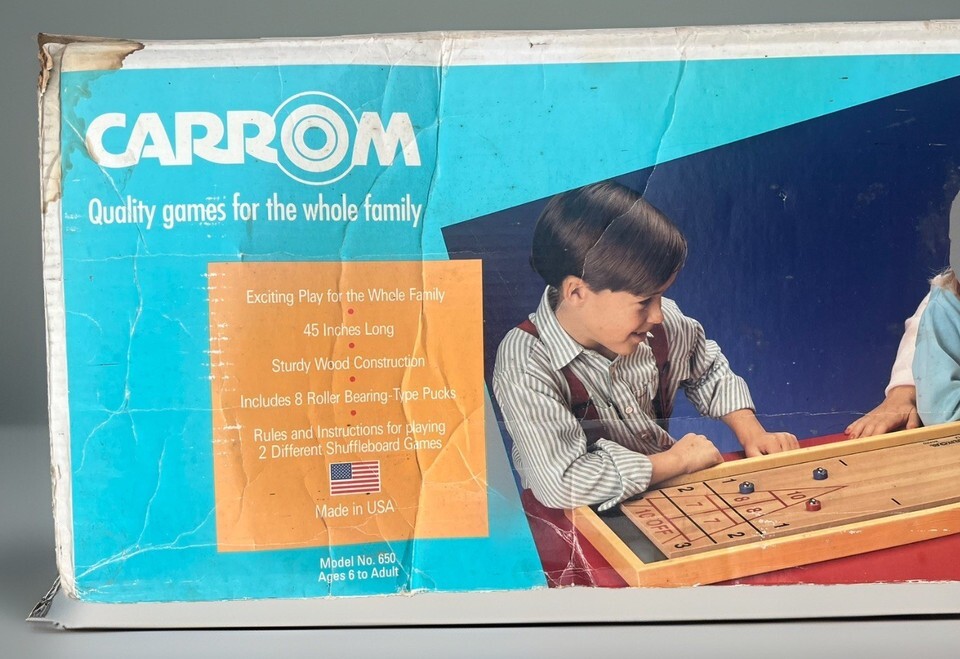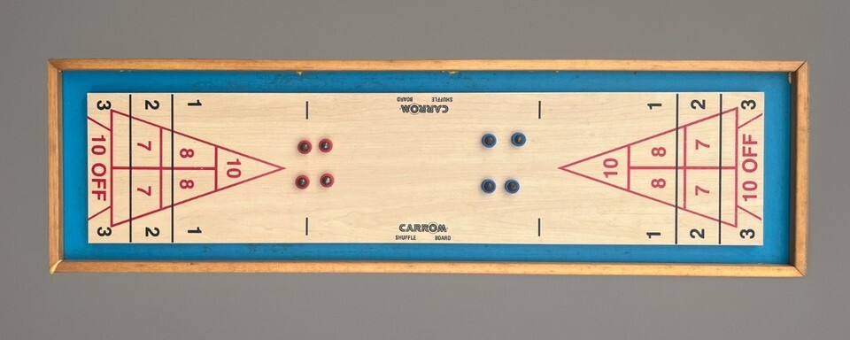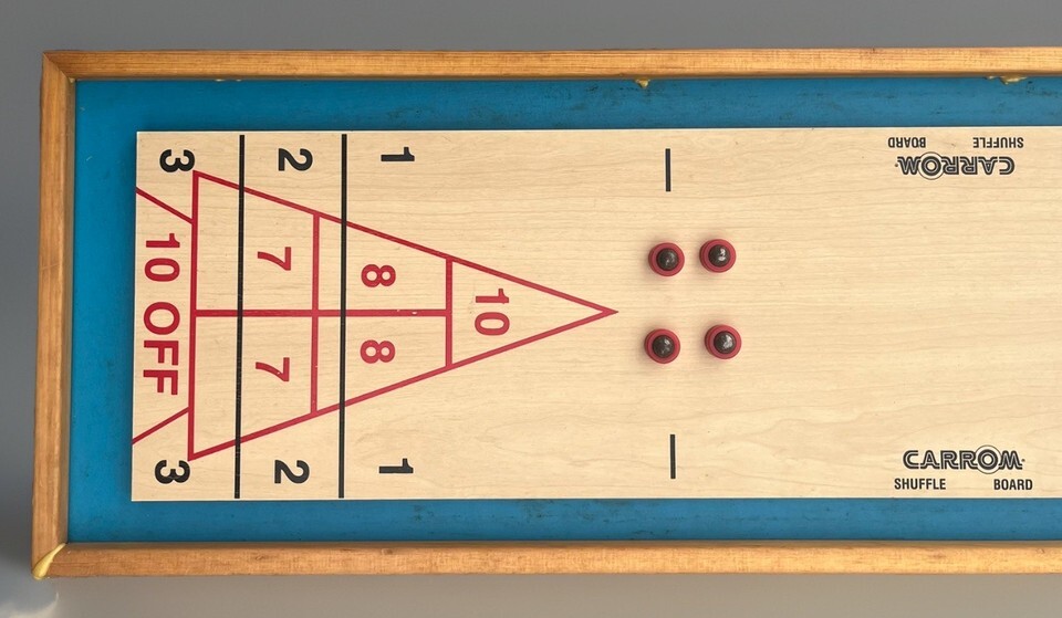 Vintage Carrom Shuffle Board Game Wood 8-Rollers #650 Made in USA 80s 90s