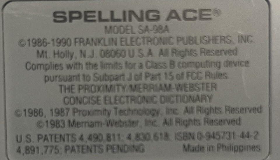 Franklin Computer Spelling Ace w/ Thesaurus SA-98A English Spell Checker Webster