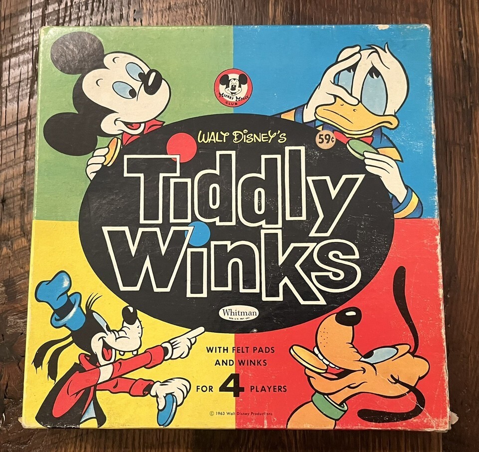 VTG Boxed Walt Disney's Tiddly Winks Mickey Donald Pluto Goofy Whitman Game 1963