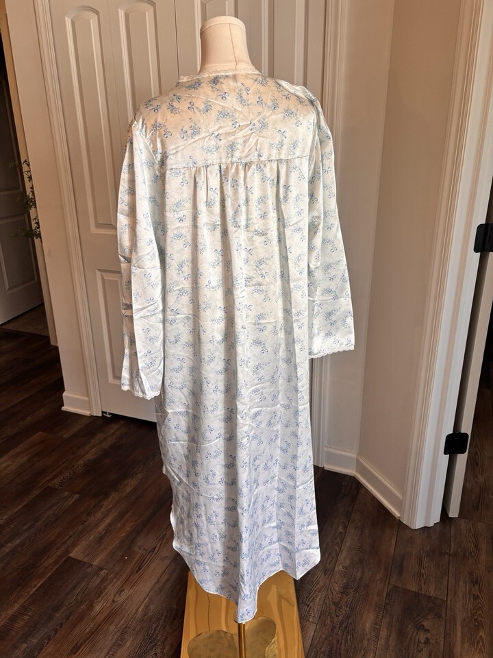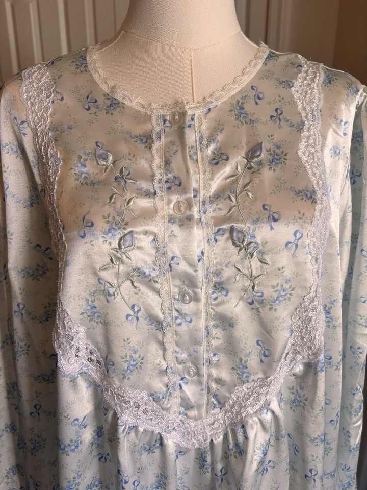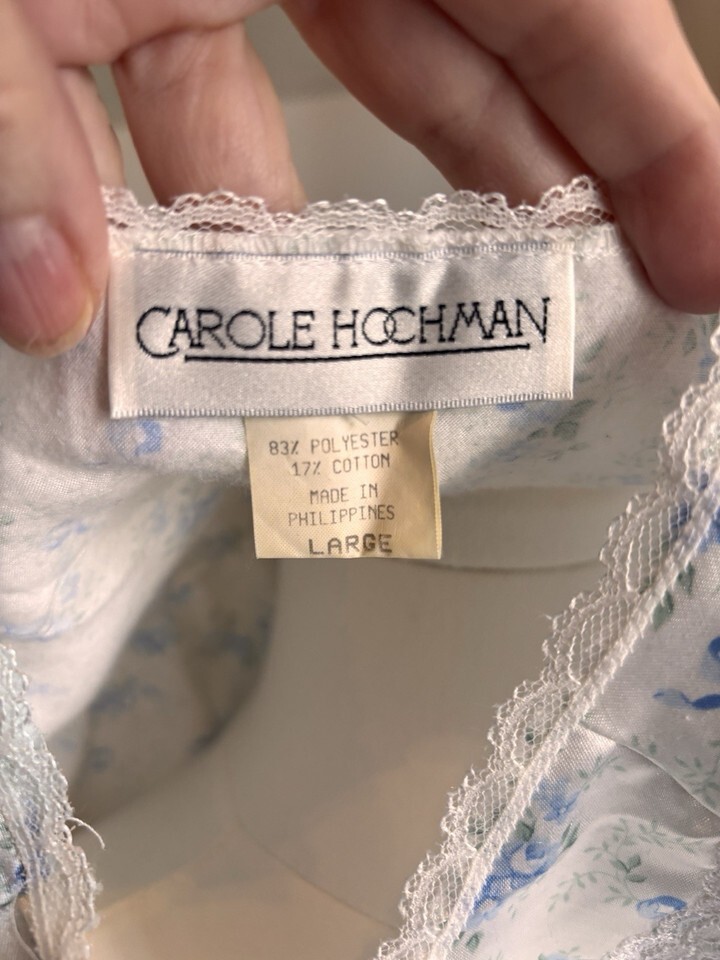 Vtg Carole Hochman Blue Floral Lace Nightgown Womens Brushed Back Shabby Chic Lg