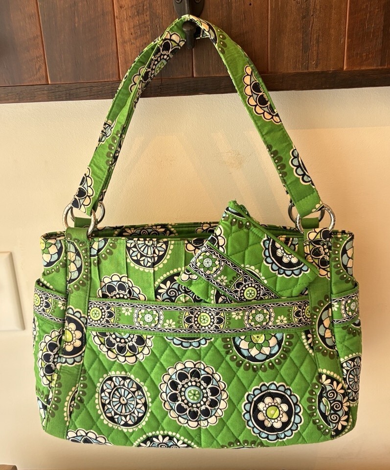 Pre-loved Partner Vera Bradley Cupcakes Green Quilted Tote Bag Purse & Match...
