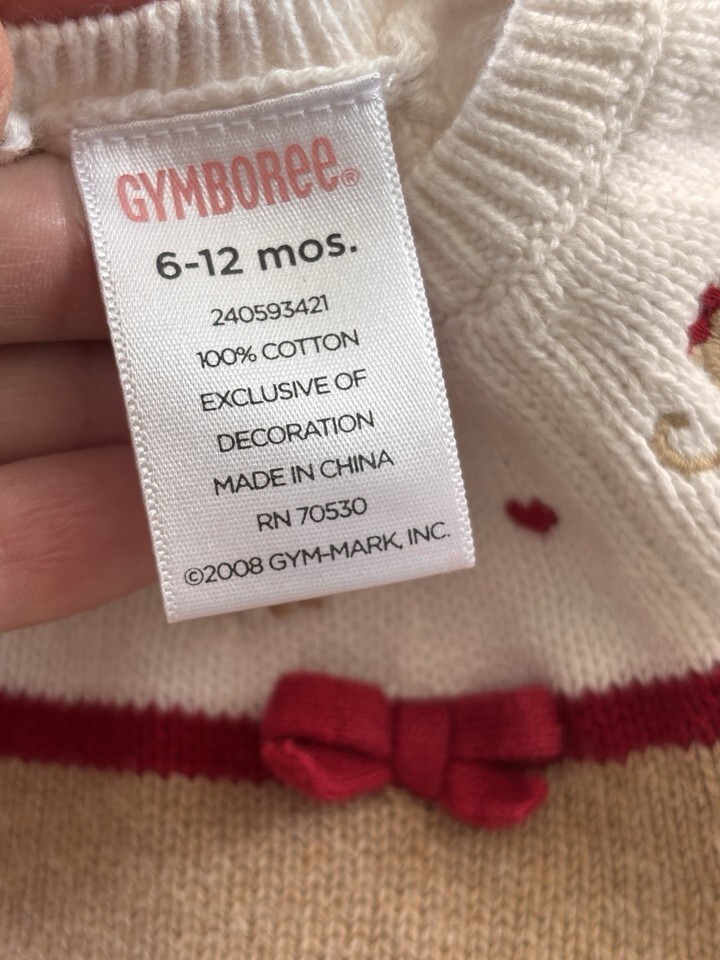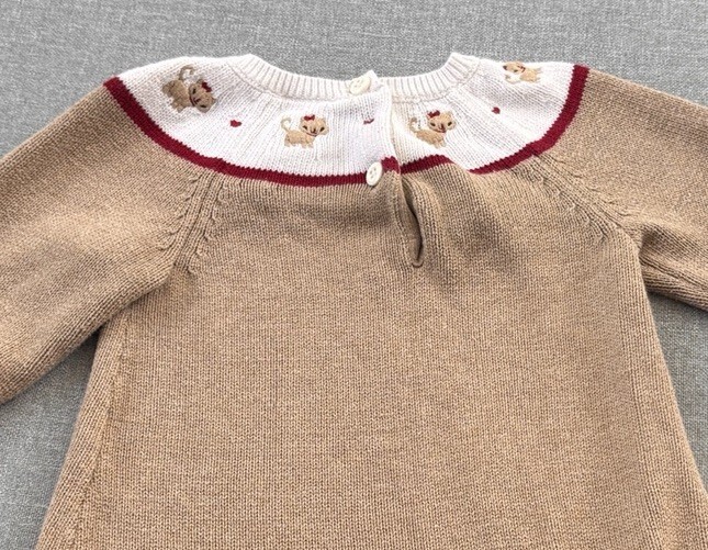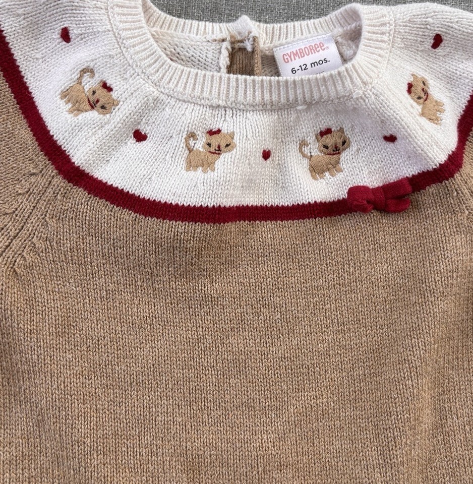 Gymboree Toddler Girls Kitty Cat Heart Sweater dress Tan 6-12mo Bow