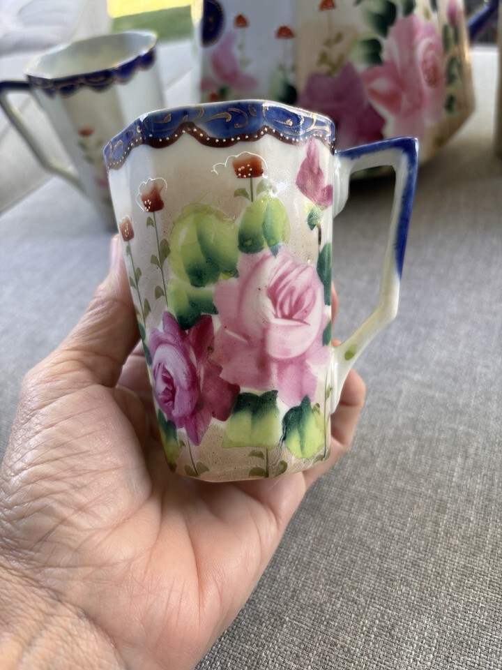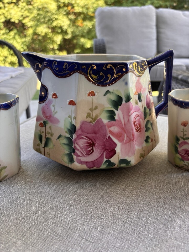 Antique TE-OH Nippon (Japan) Hand Painted China Lemonade Pitcher w/4 Glasses