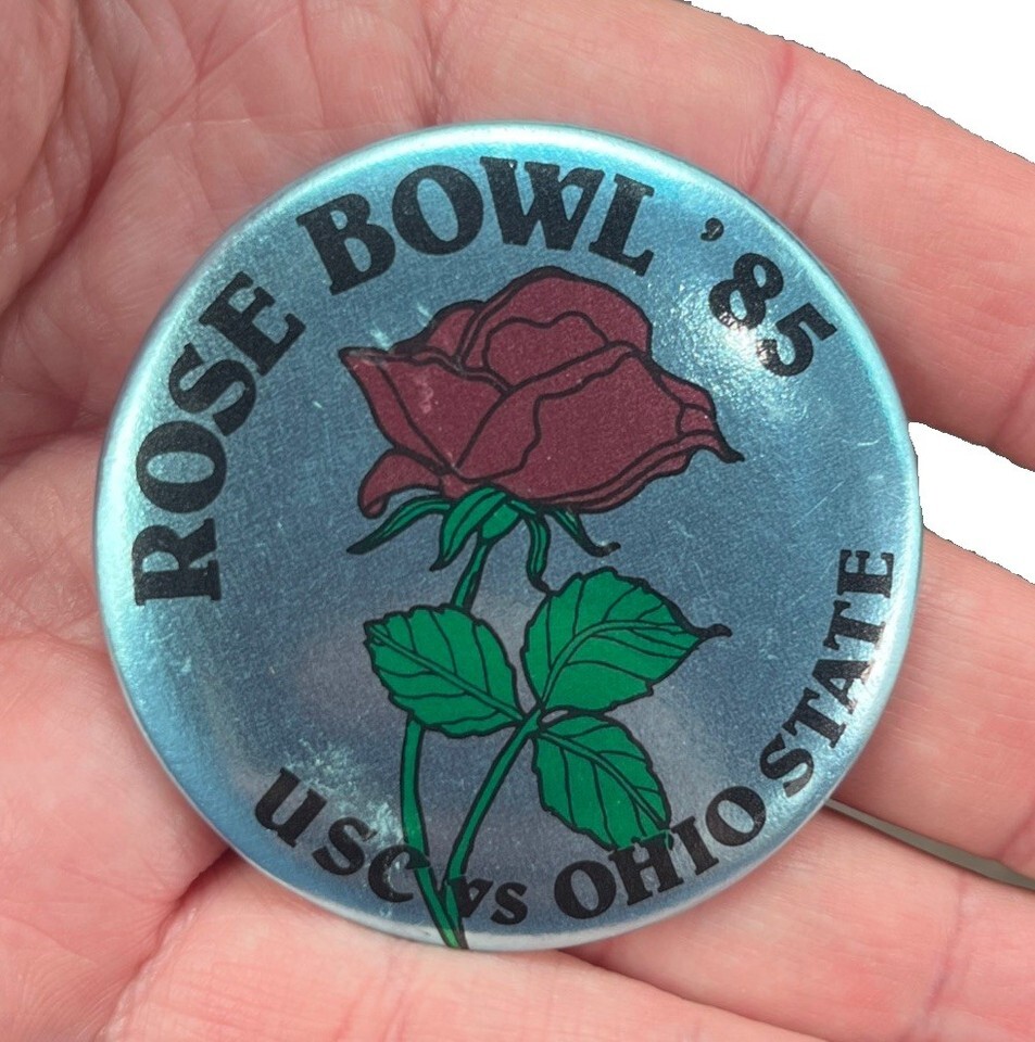 VTG 1985 ROSE BOWL USC Trojans vs. OHIO STATE Buckeyes Button Pin Football NCAA