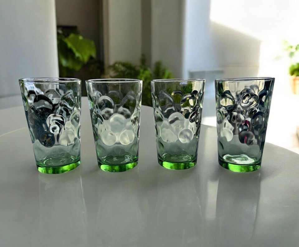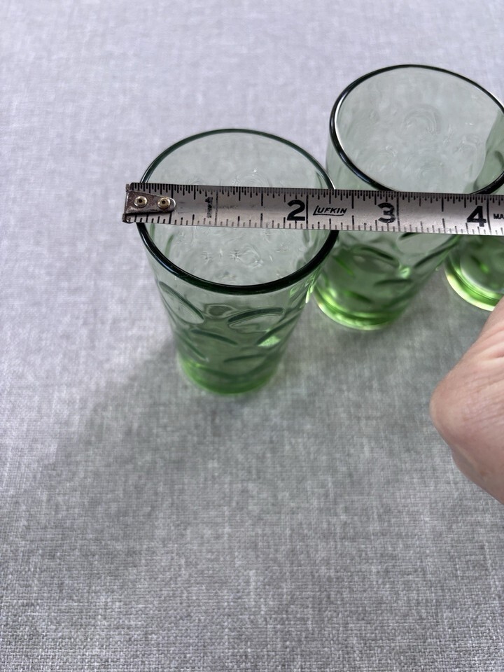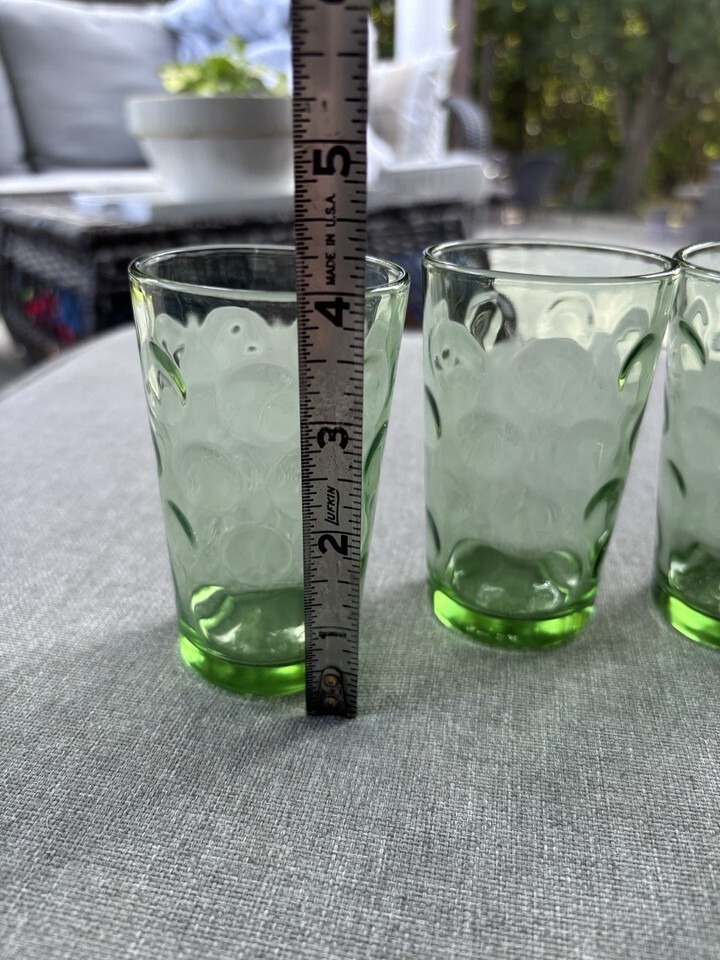 Set of 4 Vintage Hazel Atlas EL Dorado Green Coin Dot Juice Glass Tumbler