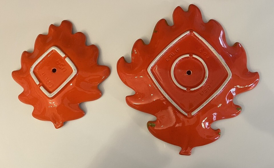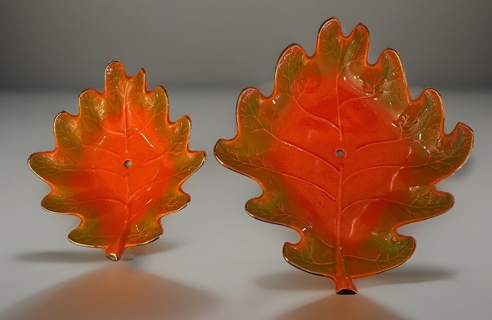 Vintage California Pottery Orange 2 Tier Leaf Tidbit Tray Made In USA MCM Fall