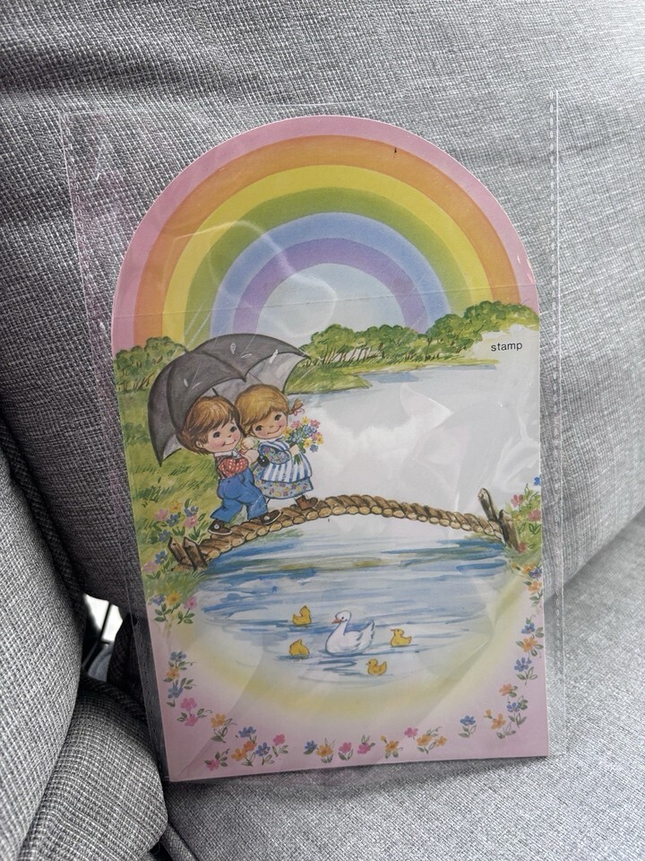 Little Rainbows Fold & Seal Card/Envelopes Vintage New Old Stock