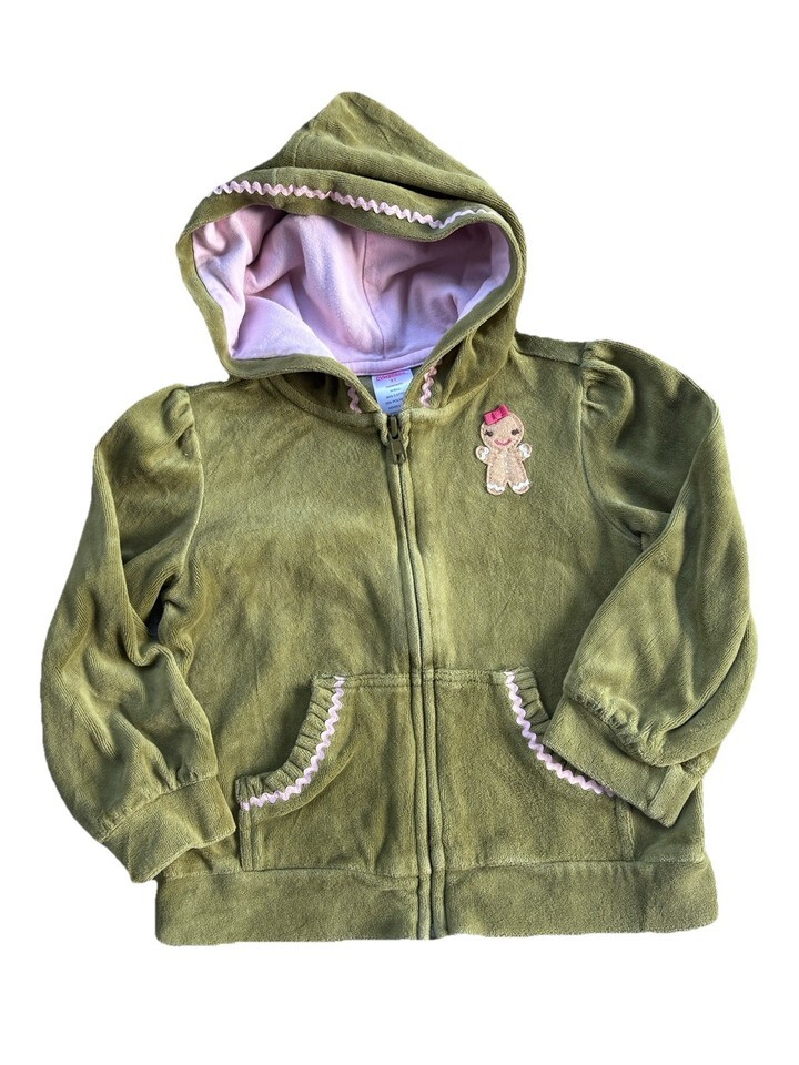 GYMBOREE GINGERBREAD GIRL GREEN PINK TRIM VELOUR HOODIE JACKET SZ 3T