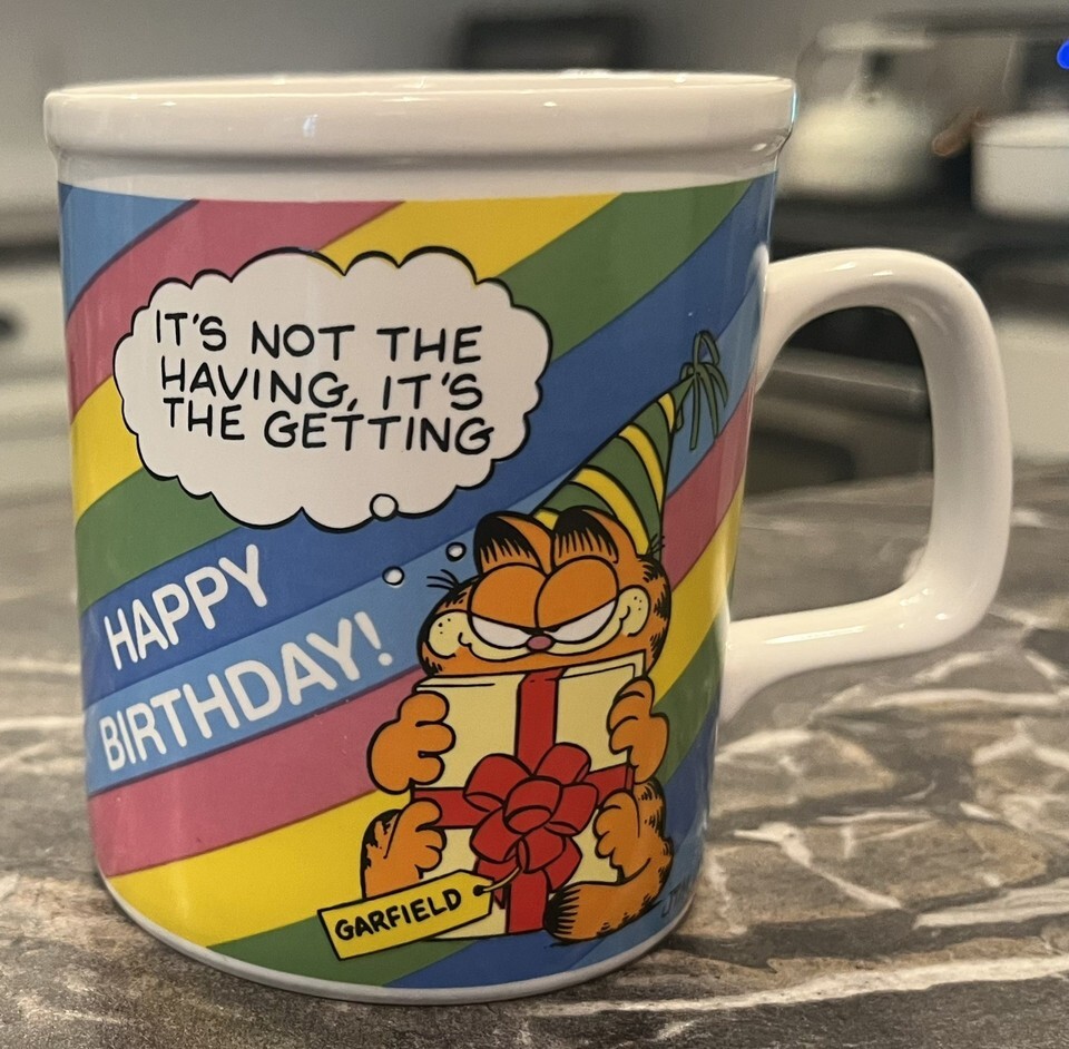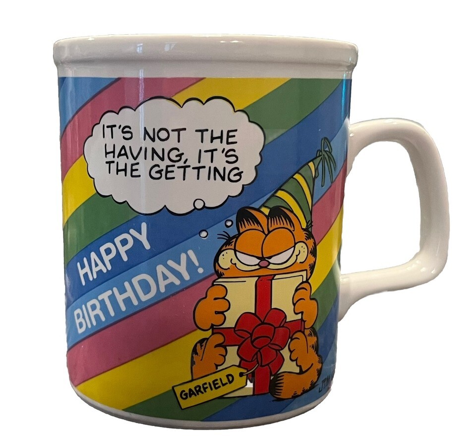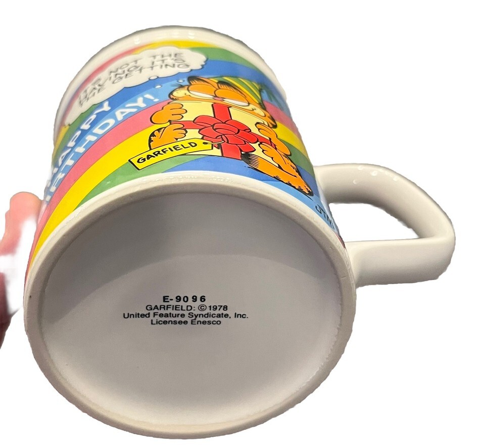 VTG 1978 Enesco Syndicate Garfield Cat Birthday Ceramic Coffee Tea Mug Cup MINT!