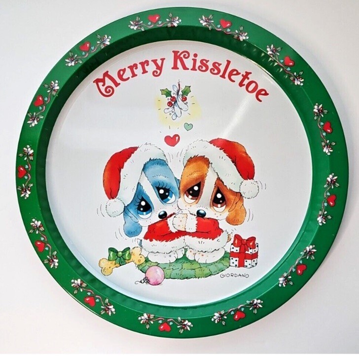 Sad Sam & Honey Christmas Tin Tray Giordano 1988 Merry Kissletoe Puppy Love Dogs