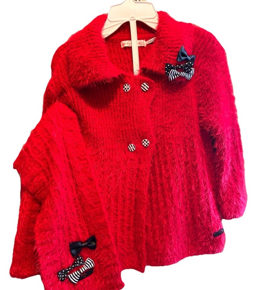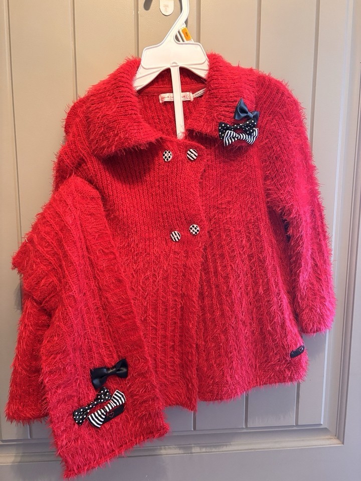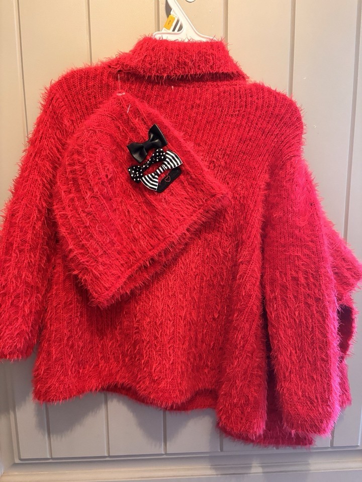 Deux Par Deux Sweater Girl's Mohair Blend Floral Knit Hat Scarf Red Sz 3