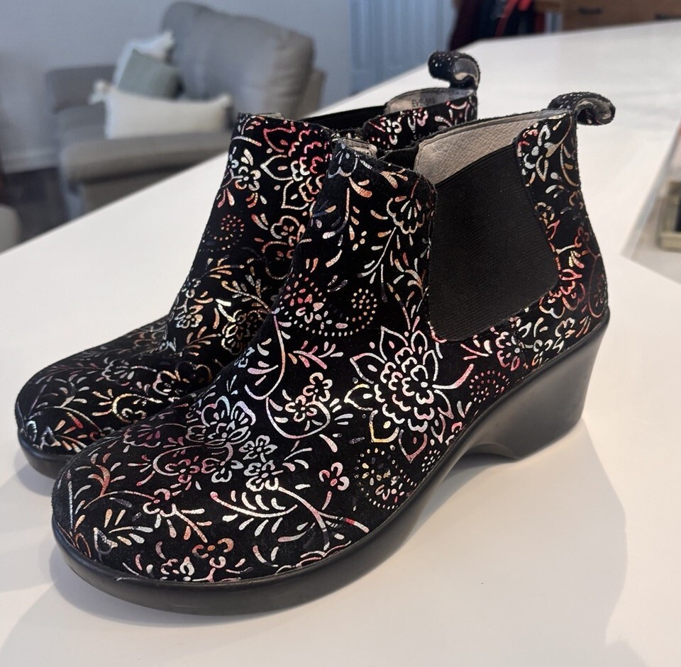 Pre-loved Partner Alegria Eve-559 Womens Ankle Boots Size 37 US 9 Floral Zip...