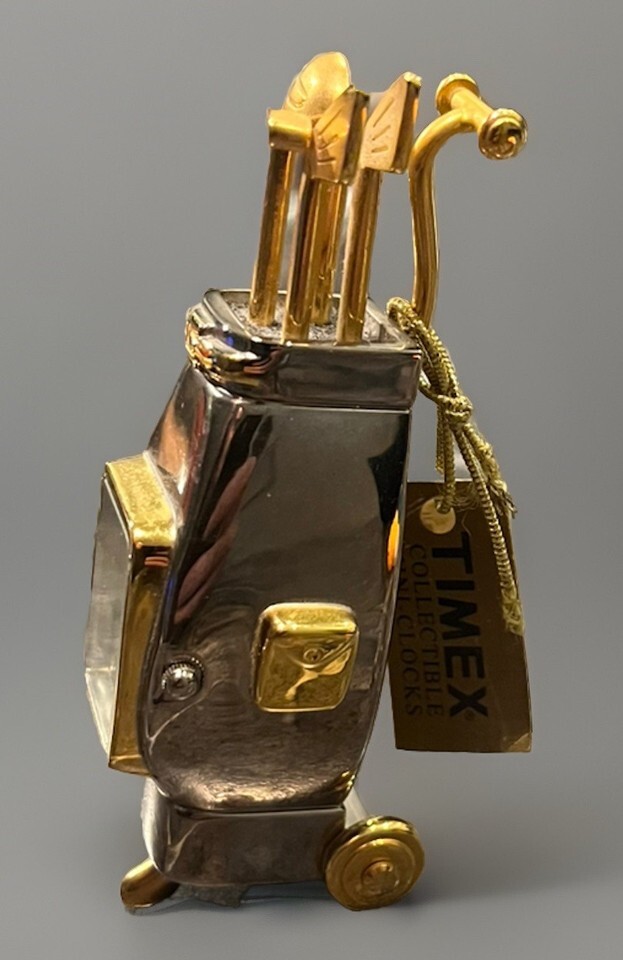 Timex Miniature Golf Clock Watch Bag Clubs Ball Paperweight Desk Sports WORKS!