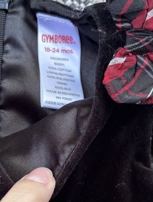 Gymboree Christmas Dress Holiday Classics Black Velvet Red Plaid Tulle 18-24M