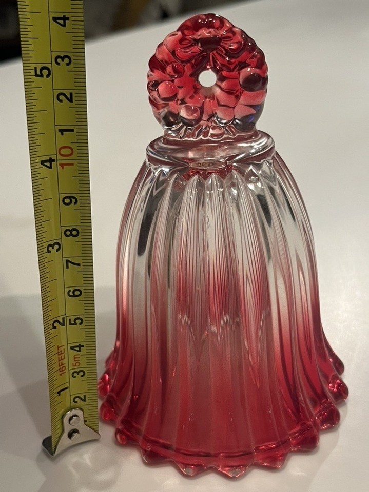 Wreath Christmas Holiday Red Clear Crystal Ribbed Glass Bell Decoration Decor