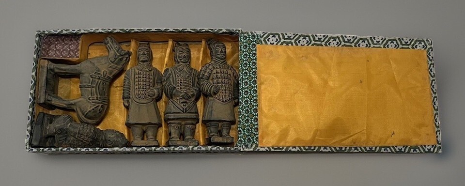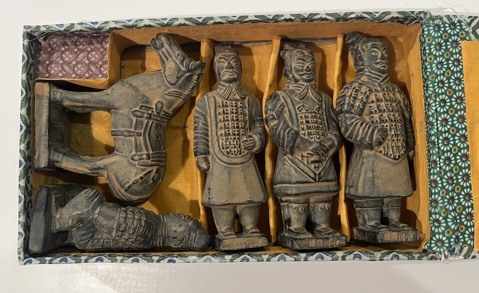 VTG Terracotta Warrior Chinese Clay 5”& 10” Soldier Statues Figurine War w/Case