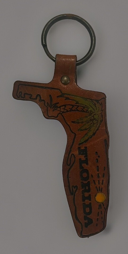 VTG State Florida FL Leather Keychain Key Ring Keys Tampa Orlando Miami Destin